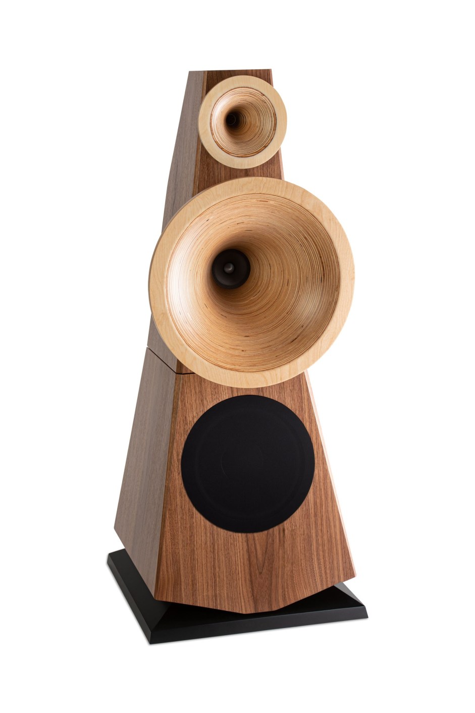 A full range 3 way with a modern sculptural design: The 1.35m high ODEON AUDIO Semper is the second largest model of the ODEON AUDIO product range. It can be easily integrated into any room. With its large spherical horns and its 13″ woofer, the Semper generates enormous dynamics, resolute bass and highest resolution possible for music reproduction with the intensity and liveliness of live performances. Compared to its predecessor models, the Semper achieves an increased efficiency of 96db. It can be combined with all amplifier types: High-quality solid states and tube amplifiers as well as low power triodes (such as 300B) drive the Semper with ease.
