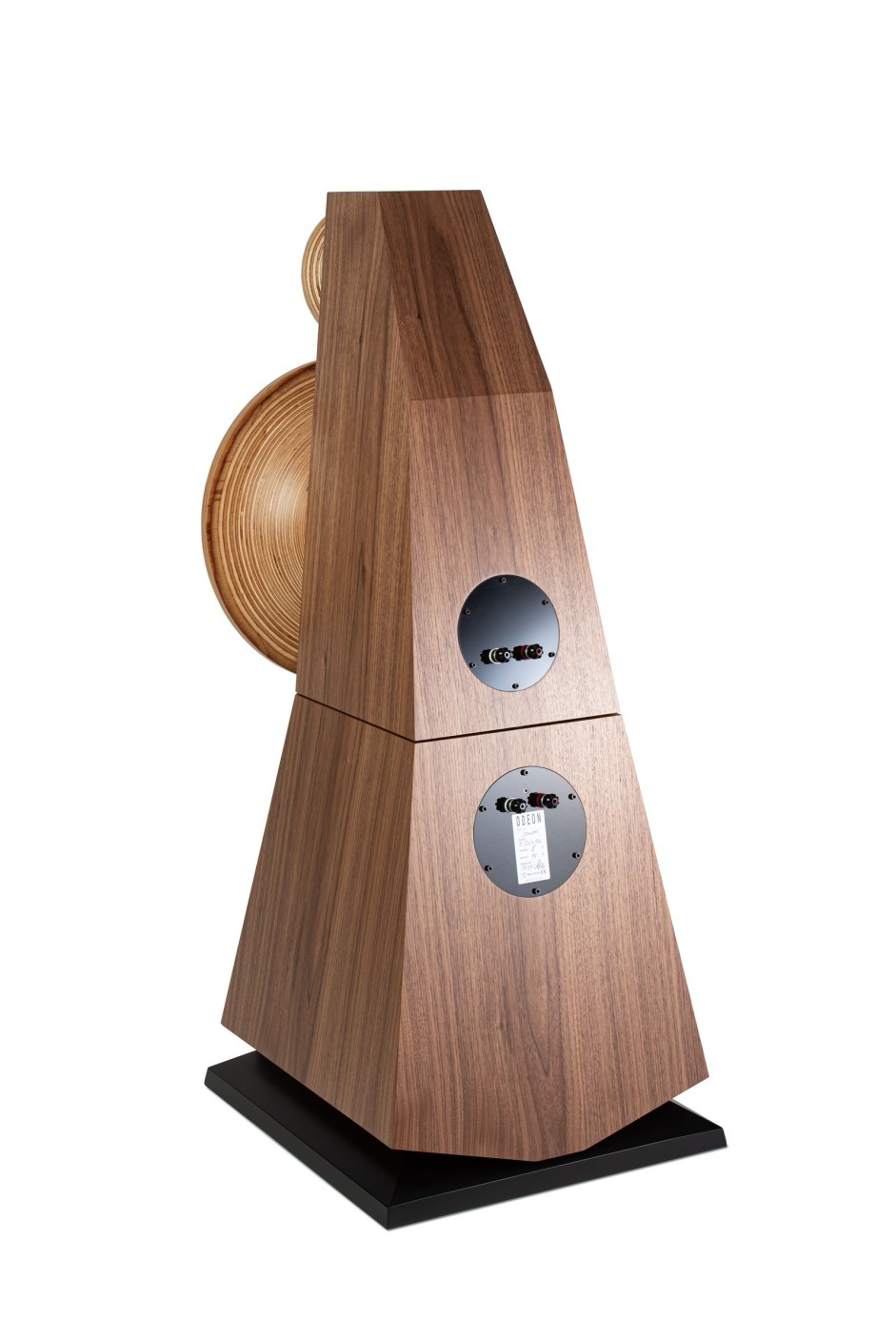 A full range 3 way with a modern sculptural design: The 1.35m high ODEON AUDIO Semper is the second largest model of the ODEON AUDIO product range. It can be easily integrated into any room. With its large spherical horns and its 13″ woofer, the Semper generates enormous dynamics, resolute bass and highest resolution possible for music reproduction with the intensity and liveliness of live performances. Compared to its predecessor models, the Semper achieves an increased efficiency of 96db. It can be combined with all amplifier types: High-quality solid states and tube amplifiers as well as low power triodes (such as 300B) drive the Semper with ease.